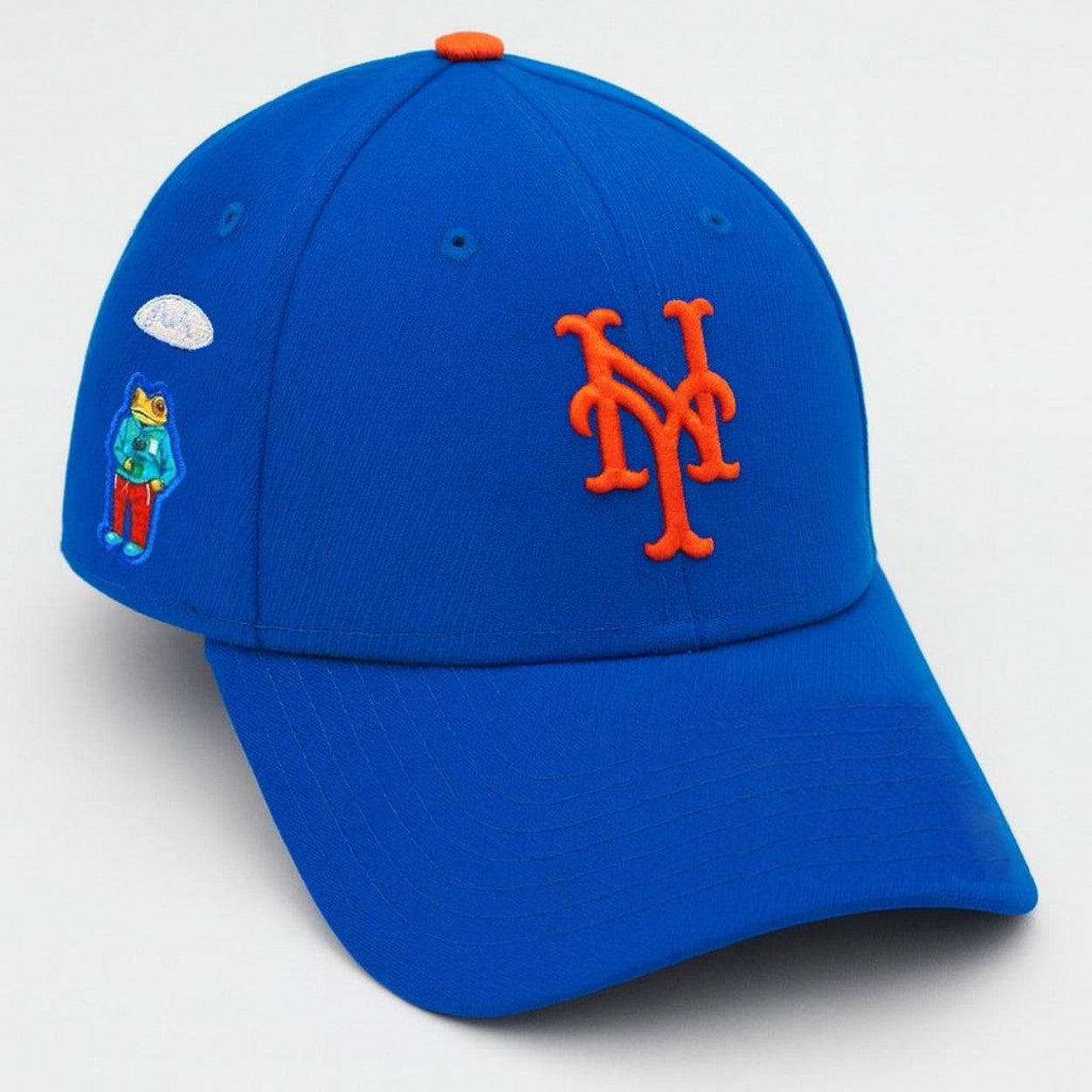 Crafted from a high-quality cotton x khaki blend, this hat offers a soft, comfortable feel and long-lasting durability. The striking royal blue base provides the perfect backdrop for the Mets' unmistakable orange "NY" logo, embroidered with precision. Adding a touch of Bad Bunny's signature aesthetic, a detailed embroidered frog character is featured on the side, complete with a thought bubble. Its one-size-fits-most design and adjustable snap closure.