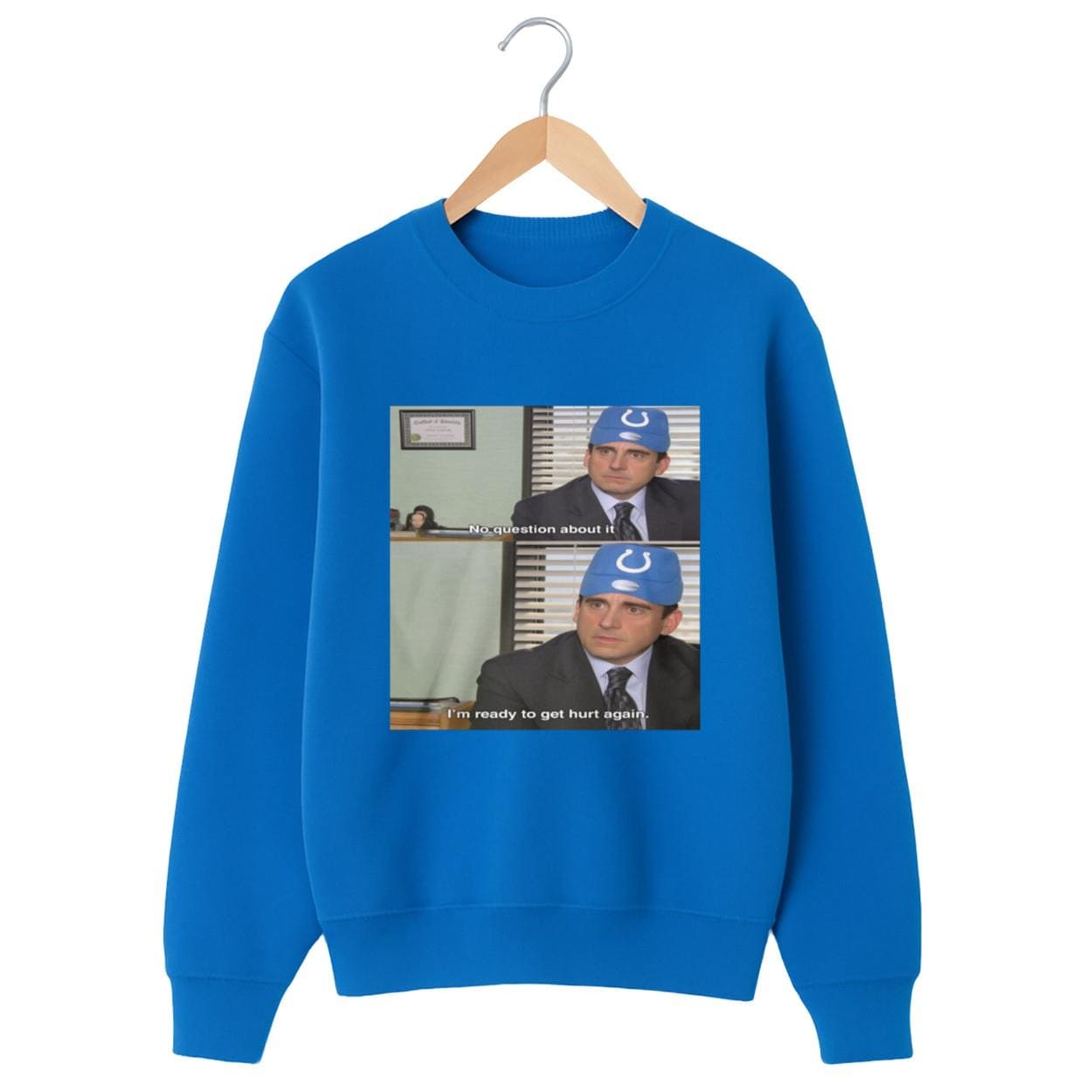 Channel the legendary resilience of Dunder Mifflin's best boss, Michael Scott, with this iconic t-shirt. Featuring the classic two-panel meme of a determined Michael Scott in his Colts hat, it's a wearable piece of television history and a badge of honor for anyone who refuses to stay down.